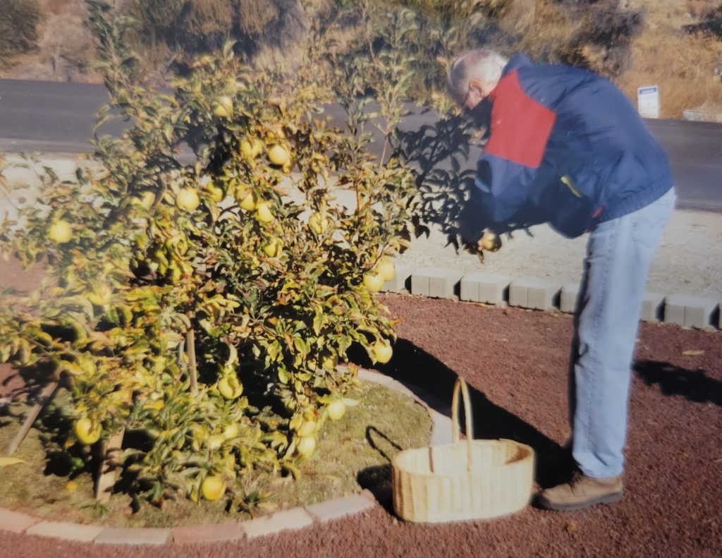 The little apple tree of course did not bear fruit the first and second harvest times. Hal showed patience, he was waiting and often went to check out the blossoms, still no apples followed. But the following autumn, oh so happy was my sweetheart when he discovered after the blossoms came the actual fruit. He looked at his tree every day, most likely counting apples and looking forward to the harvest day!