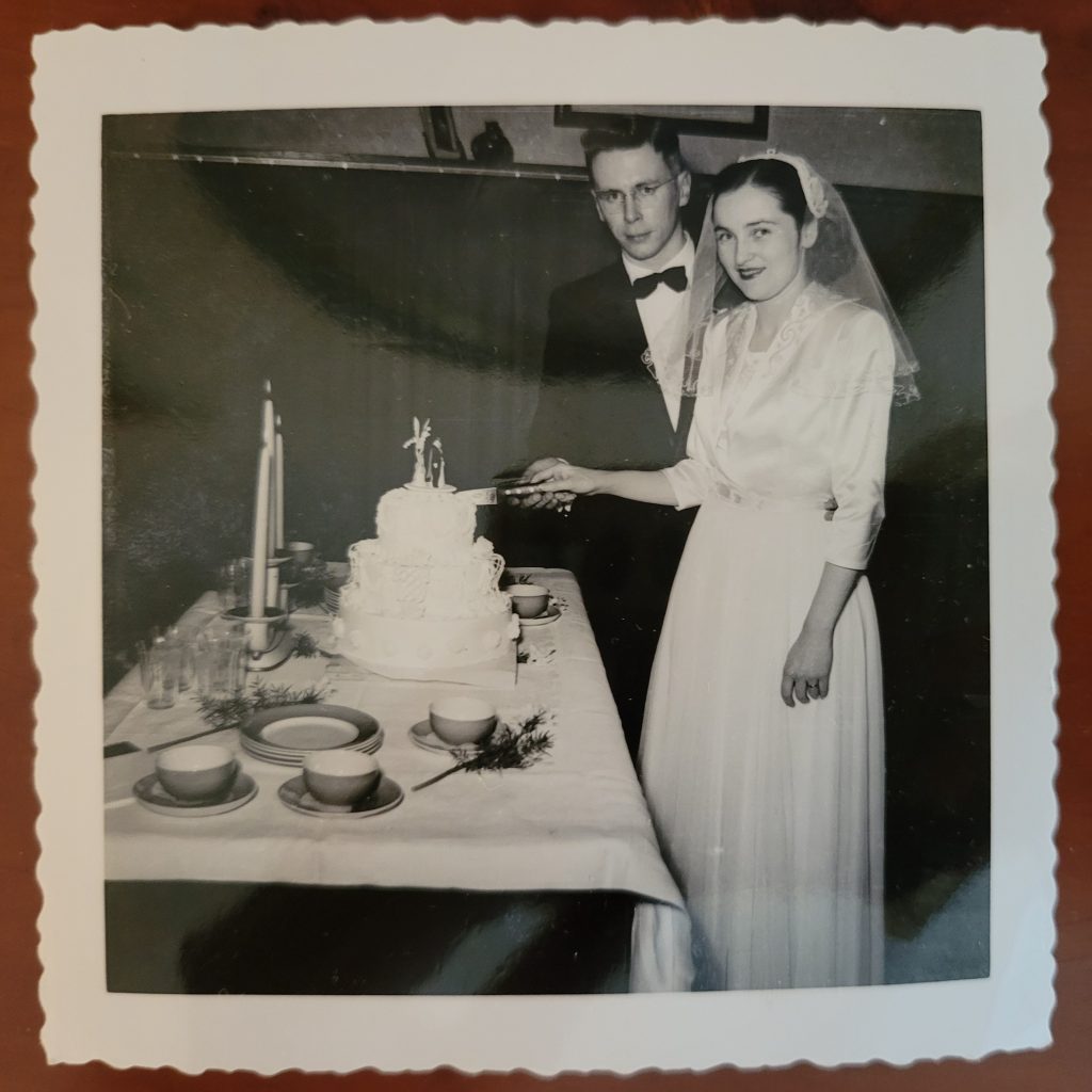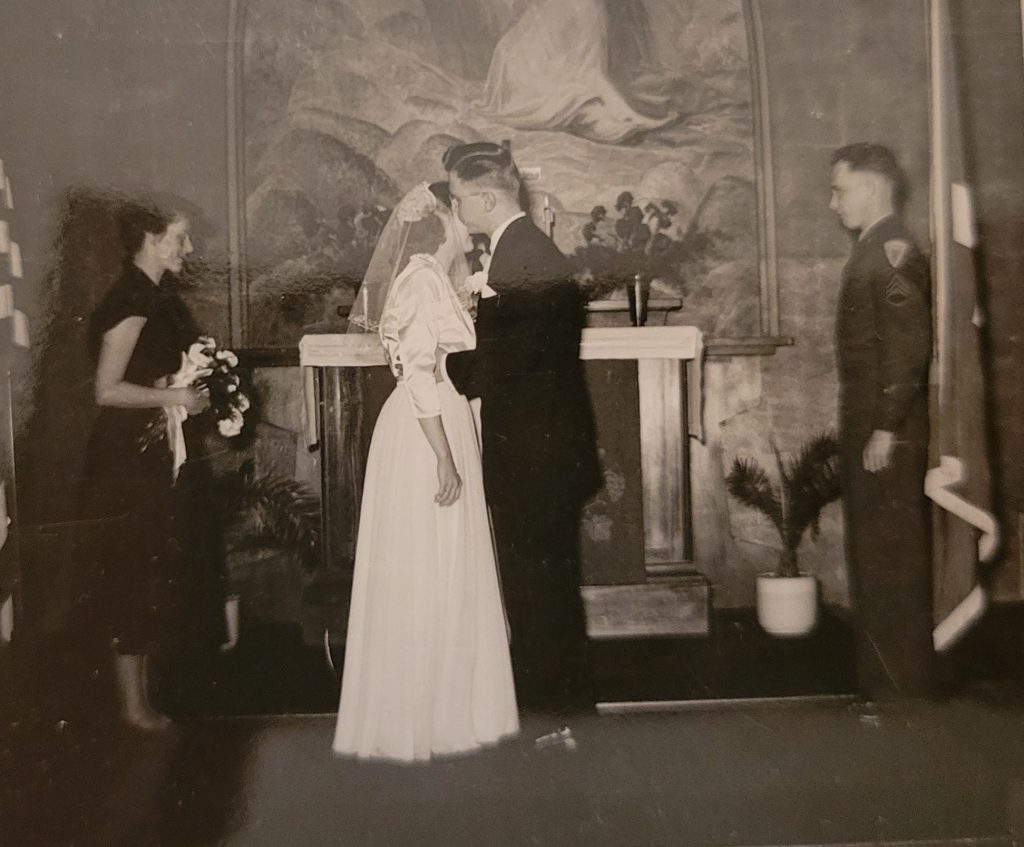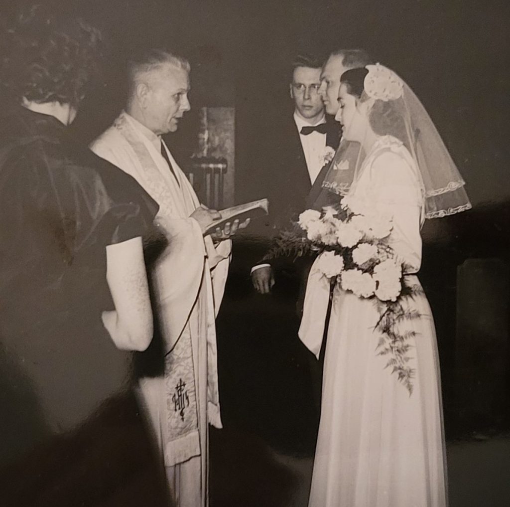 Thank you Marcie and Ilona, for sharing this wonderful story of Hal and Ilona’s wedding, along with the treasured pictures. Ilona looks so beautiful in the dress she designed, and Hal looks handsome in his tuxedo. This piece of their history leaves me feeling very happy, about their love for each other, the wedding ceremony in the charming chapel, and their long and happy life together.